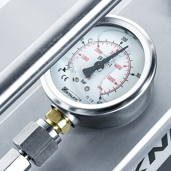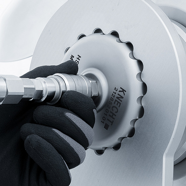 Mit der hydromechanischen Spannmutter sind die Kuttermesser schnell und kinderleicht mit bis zu 90 kN (9 Tonnen) gespannt. Eine Hydraulikpumpe baut immer die exakte Spannkraft auf. Sind die Messer gespannt, fließt das Öl zurück in die Pumpe. Während des Kutterprozesses ist die Spannmutter Öl frei. Spannmutter und Hydraulikpumpe sind nahezu wartungsfrei.