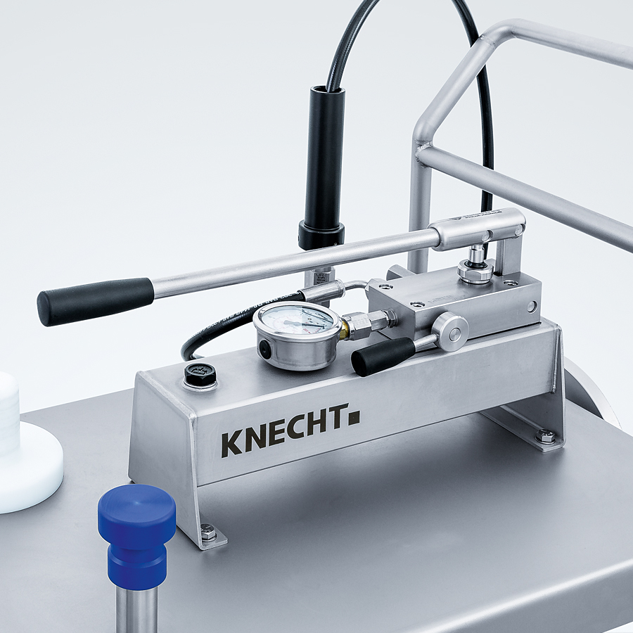 Die HSM 100 benötigt keinerlei Spannschlüssel. Mit einer kleinen Hydraulikhandpumpe werden die Kuttermesser schnell, einfach und zuverlässig mit ca. 90 kN (9 Tonnen) gespannt. Die Pumpe ist mit einem Überlastungsschutz ausgestattet. Das schützt das Schneidsystem vor Überbeanspruchung durch zu hohe Spannkraft.