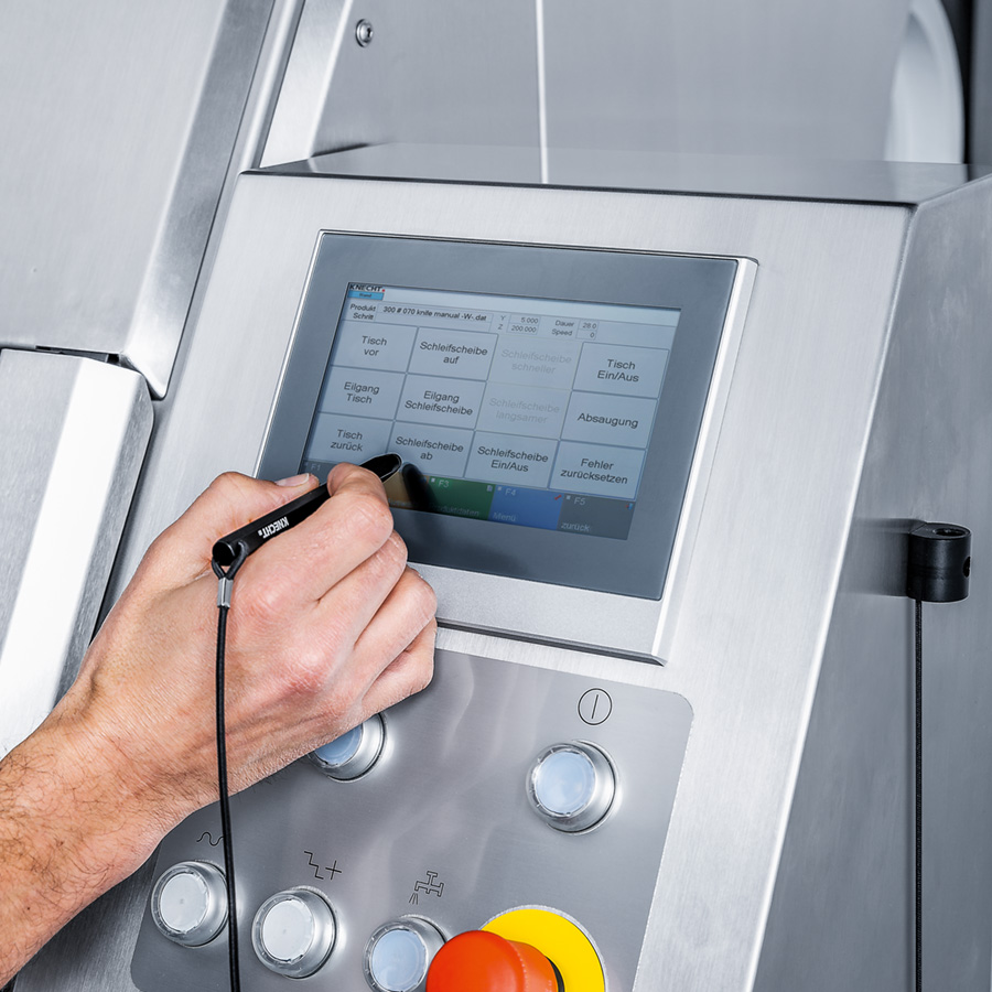 Die W 40 schleift Wolfscheiben und Wolfmesser, Schneidsätze von Füllwölfen sowie Schneidsätze von Feinstzerkleinerern mit einem Durchmesser bis 400 mm. Die Planparallelität beträgt zwei hundertstel Millimeter.