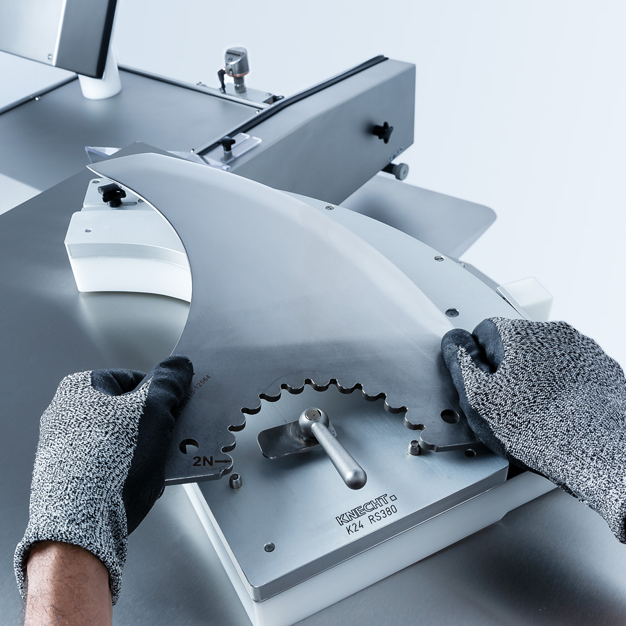 Es können Kuttermesser mit sichelförmigen und geraden Schneiden geschliffen werden. Die maximale Messergröße beträgt ca. 450 mm (Kuttermesser ca. 500 l).