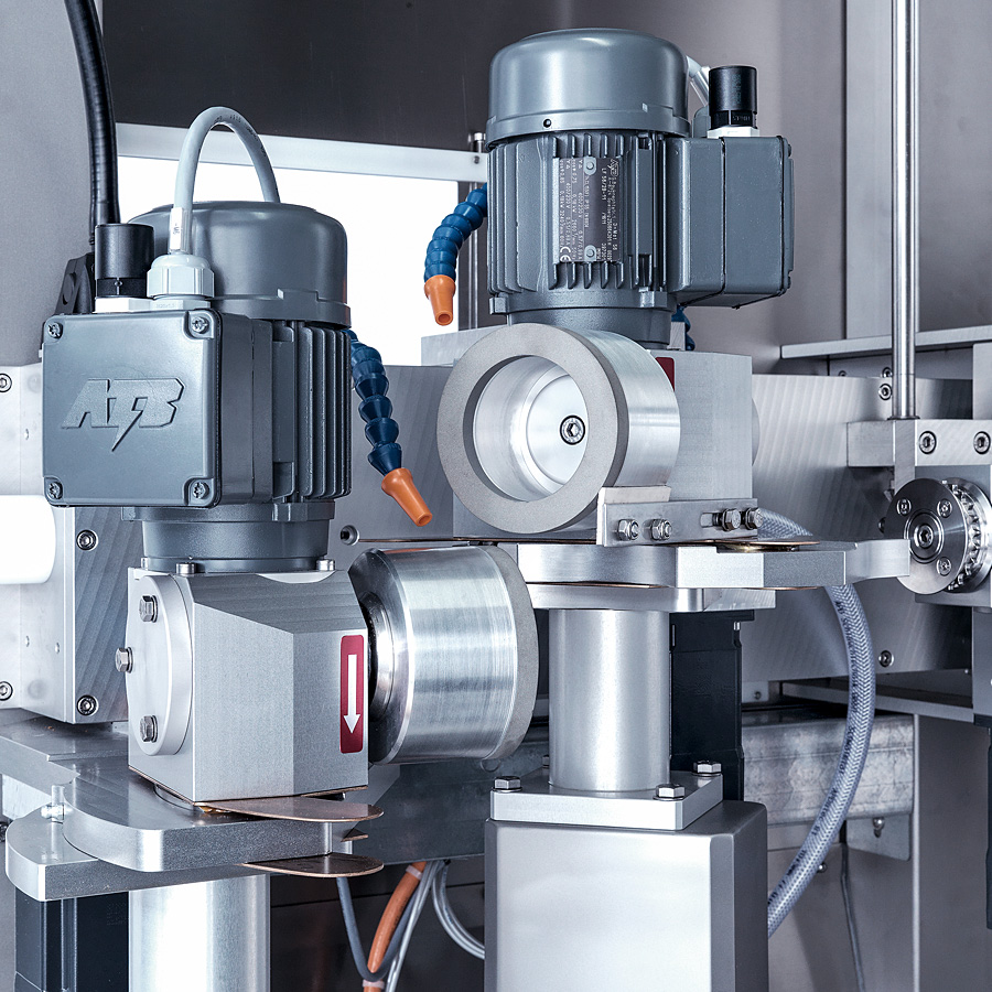 Die A 950 III arbeitet mit angetriebenen Schleifwerkzeugen. Die Slicermesser erhalten dadurch präzise definierte Anschliffe. Der Schleifdruck wird pneumatisch aufgebracht. Er kann exakt reguliert werden. Der Materialabtrag am Schneidwerkzeug ist minimal.Antrieb