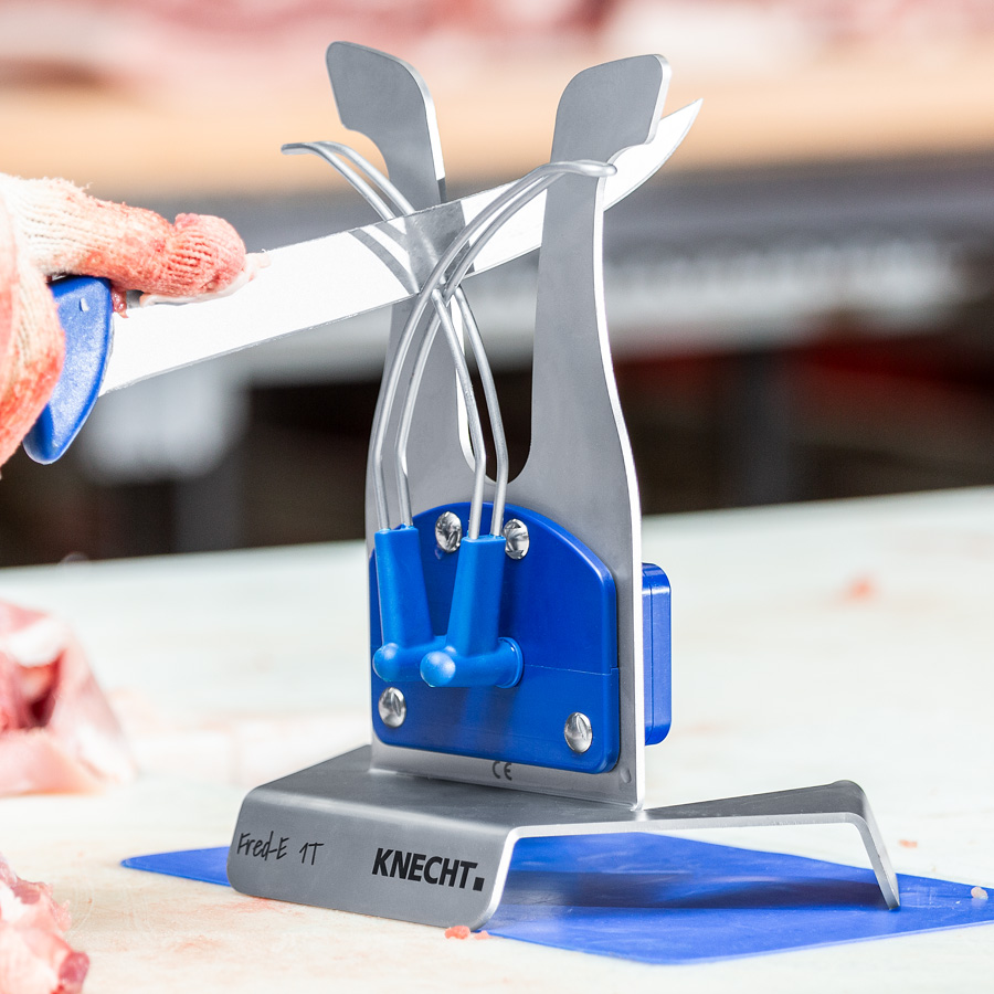 Die Handhabung des Fred-E ist maximal bedienerfreundlich. Durch die synchronisierte Bewegung der Abziehfinger lassen sich Messer präzise führen und Fehlhaltungen werden kompensiert.